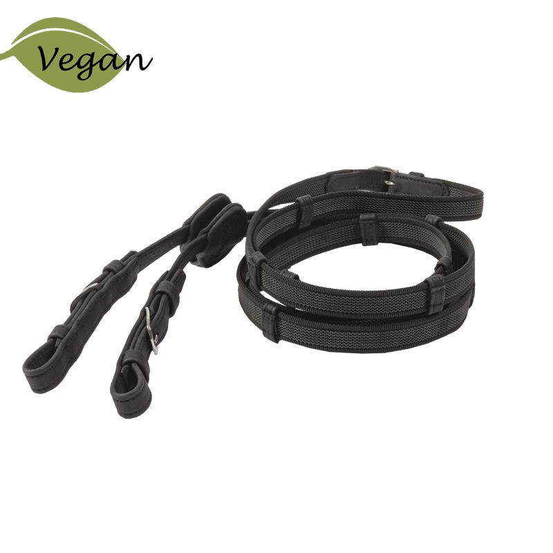 Die veganen gummierten Zügel “Cortica” sind die passende Ergänzung zu der veganen Trense aus Korkmaterial. Die Endstücke sowie die Martingalstopper sind aus Kork. Sie haben eine Breite von 16 mm und besitzen auf jeder Seite fünf Stege.